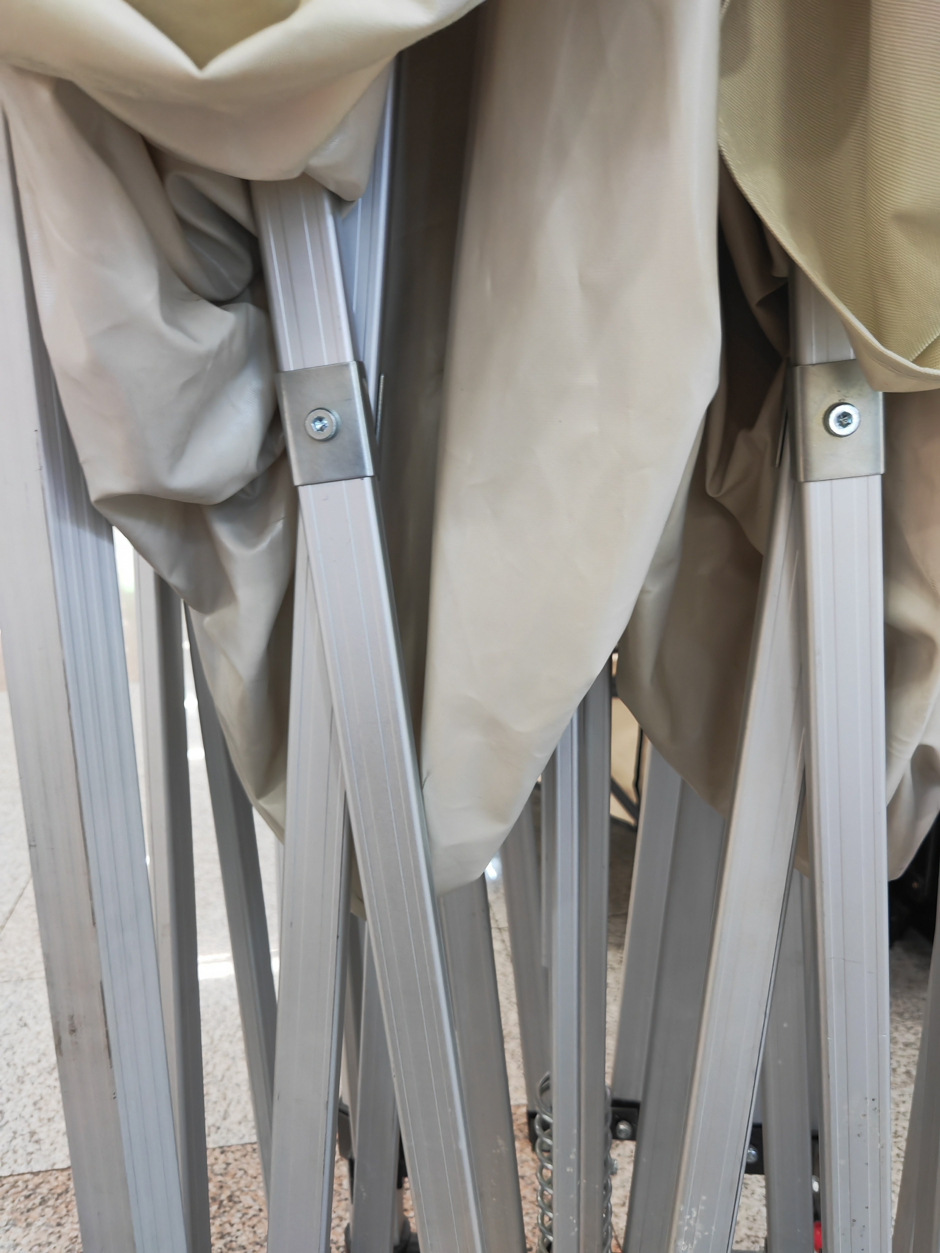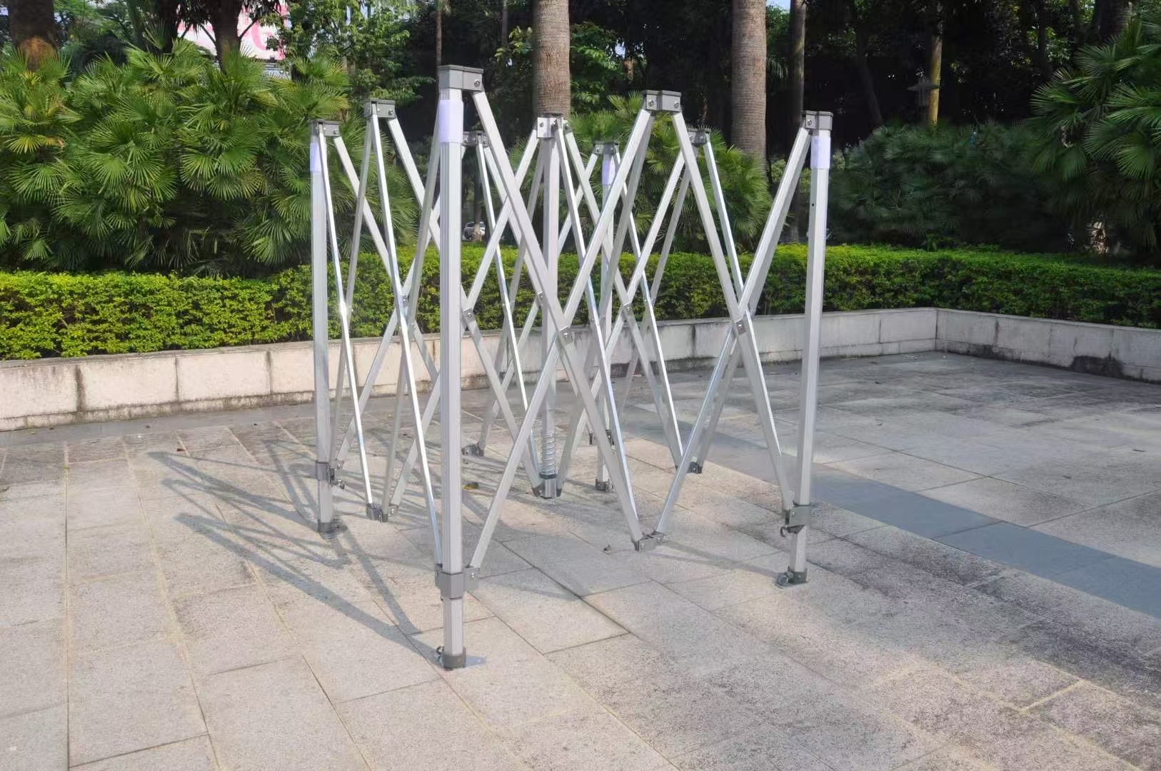 The tent features a durable aluminum hex frame that is both strong and lightweight, ensuring reliable performance while being easy to transport. The 1200D polyester tent top is treated for water resistance, mildew resistance, and fire retardancy, making it suitable for various outdoor conditions.