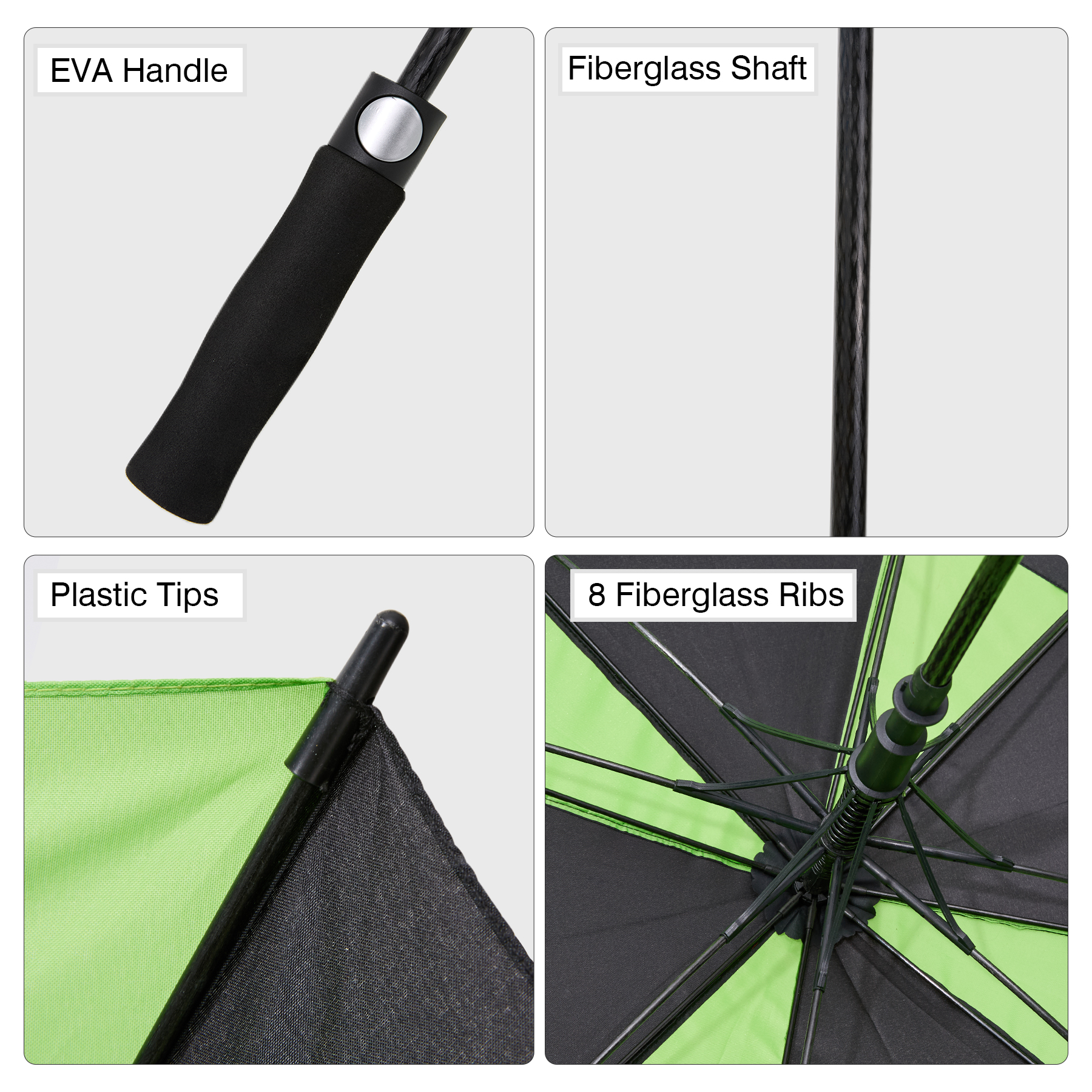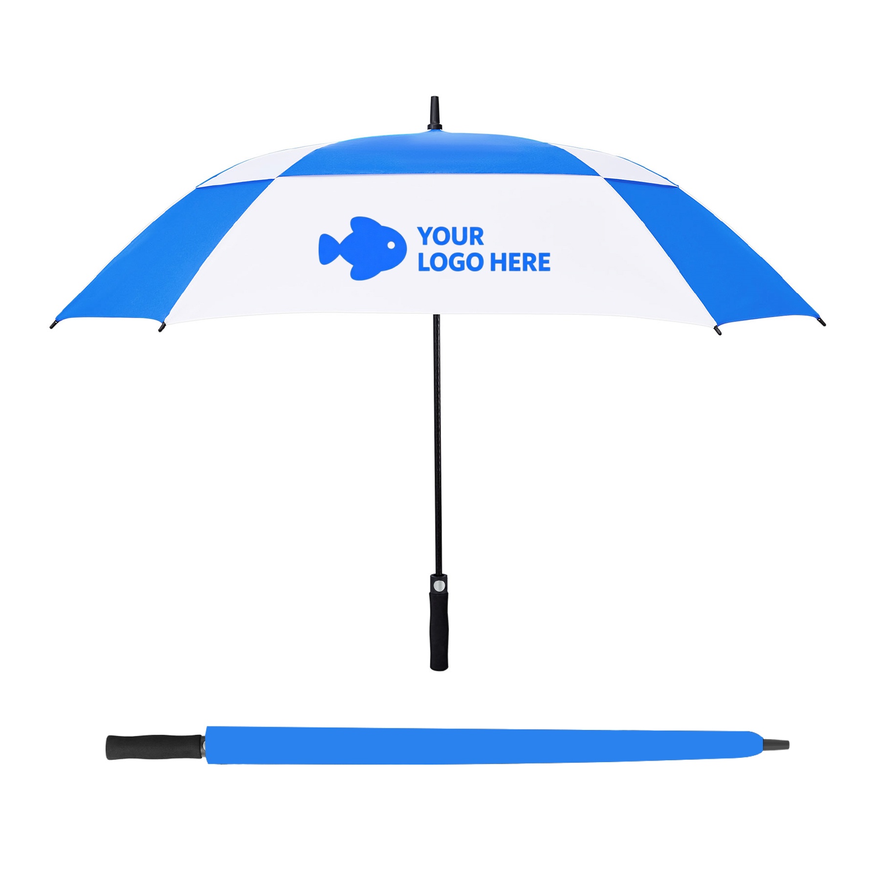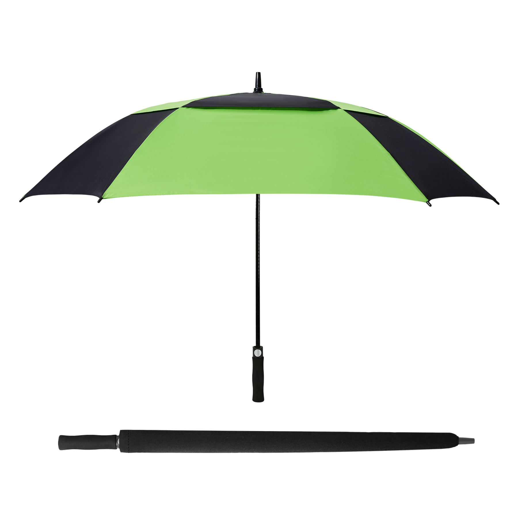 This extra-large golf umbrella combines durability and functionality, making it an ideal promotional gift for your brand. Featuring a sturdy fiberglass shaft and ribs, it ensures long-lasting performance, while the EVA sure-grip handle offers a comfortable, ergonomic hold for maximum control. The automatic open/close mechanism allows for quick and smooth operation with just the press of a button. Designed to withstand harsh weather, the umbrella’s canopy includes wind-venting passages that allow strong winds to pass through, reducing the risk of frame damage. Crafted from 190T pongee polyester fabric, it is both waterproof and fade-resistant. With a generous 60" arc canopy, it comfortably accommodates 2 or 3 people underneath with ease. Available with a matching case.